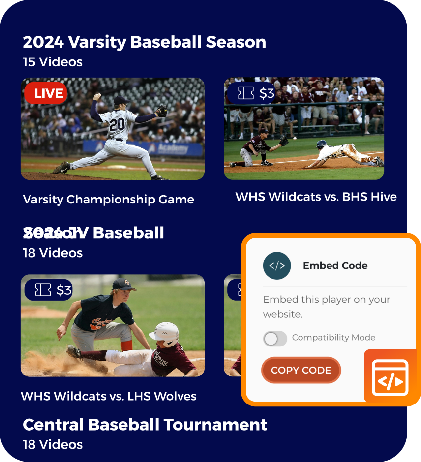 Switcher makes it easy to add your video content to any webpage with HTML5 video and stream players. Just one line of copy-and-paste code, and you can transform your website by adding a live event feed, a playlist of content, or a full video collection — without random ads, platform-generated content recommendations, or distracting pop-ups.