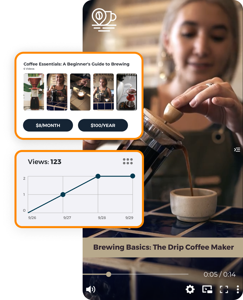 Take control of your content. Showcase your videos, create a video membership website, customize the viewing experience, and own the relationship with your customers.